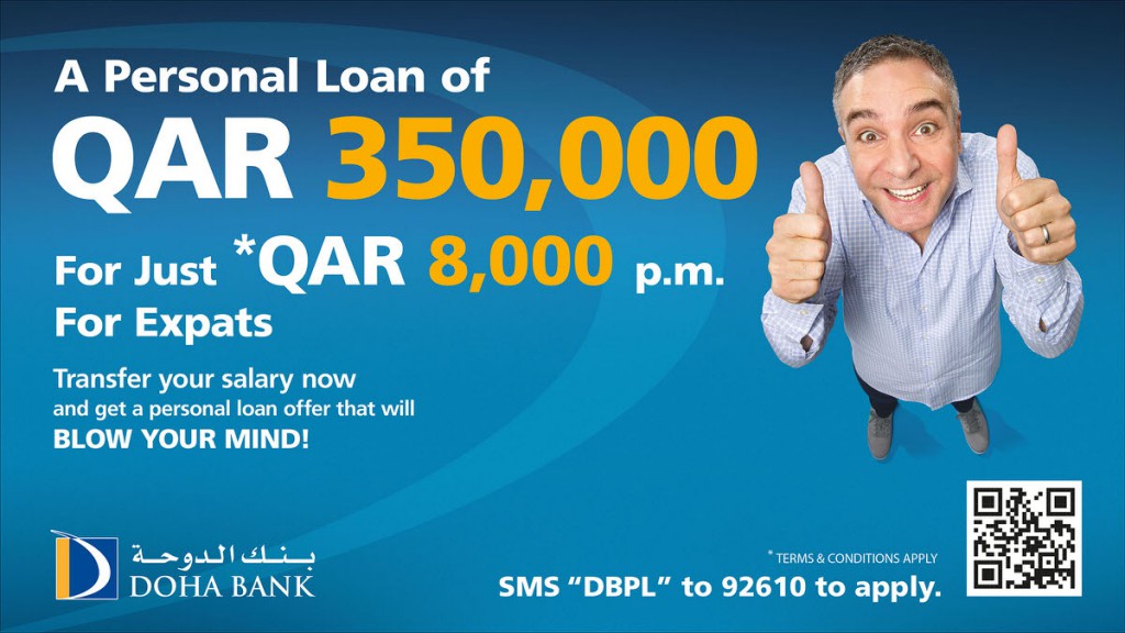 A personal loan of QAR 350,000 for just QAR 8000 per month for expats Posted on January 5, 2016February 14, 2016 by 05 Jan Transfer your salary now and get a personal loan offer that will blow your mind. Find your way to the best car loan in Qatar Best home loans and refinancing solutions for Qatar and UAE